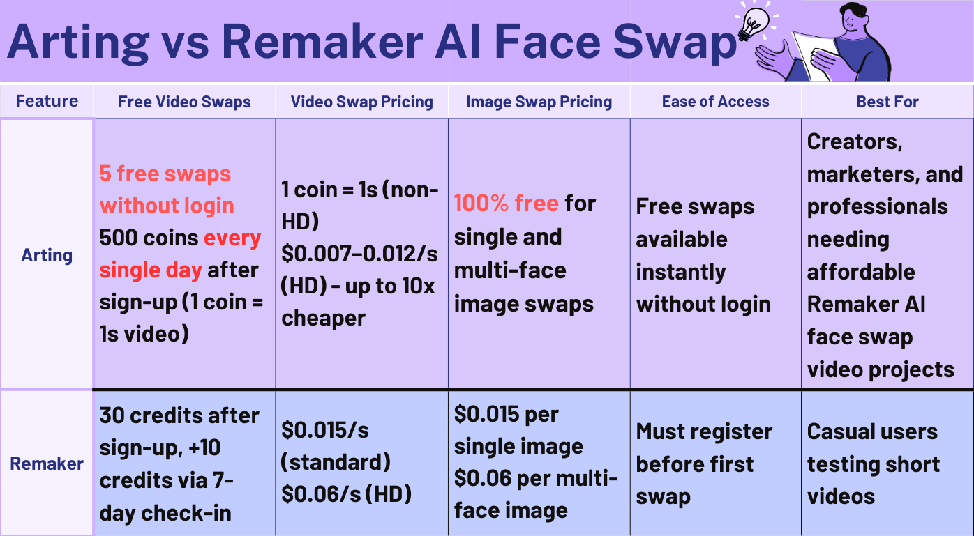 왜 Remaker AI Face Swap보다 Arting을 선택해야 할까요?